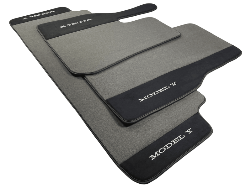 Grå bilmatter for Tesla Model Y med Alcantara-lær