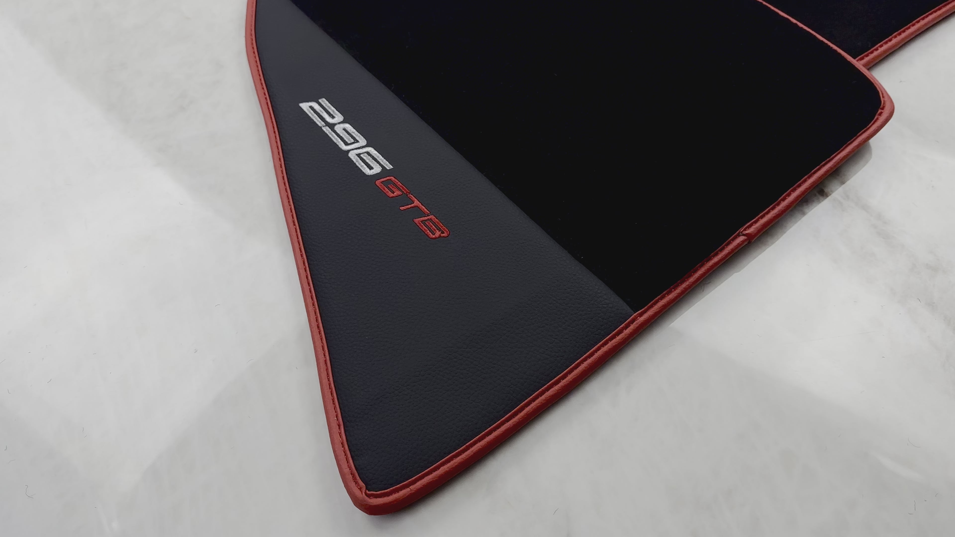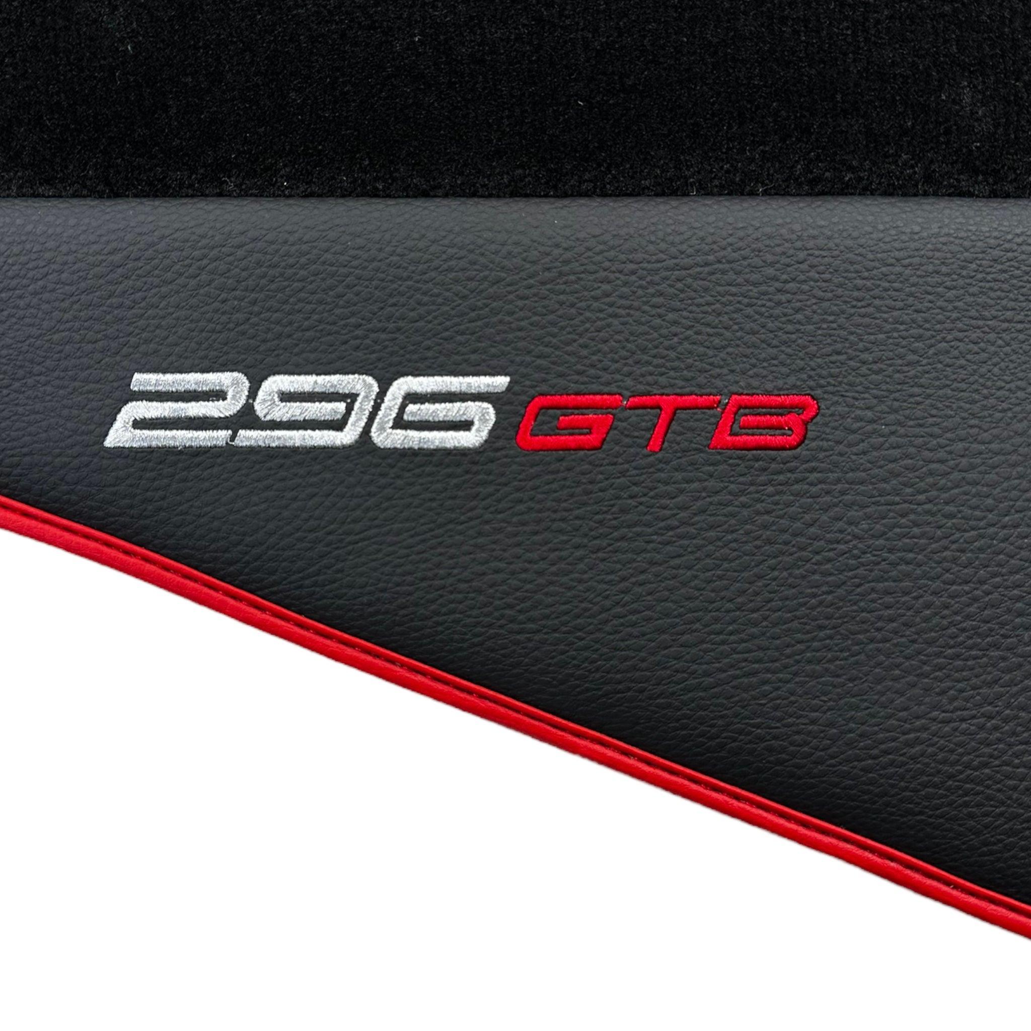 Black Floor Mats for Ferrari 296 GTB (2022-2025) with Leather and Red Trim
