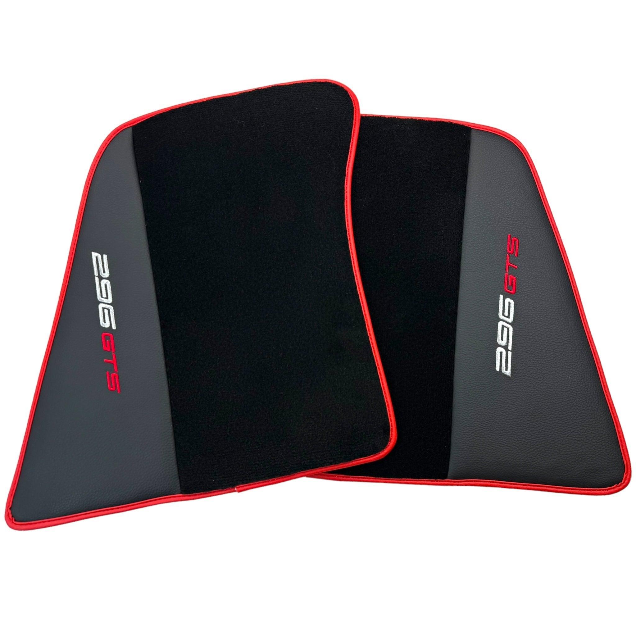Black Floor Mats for Ferrari 296 GTS (2022-2025) with Leather and Red Trim