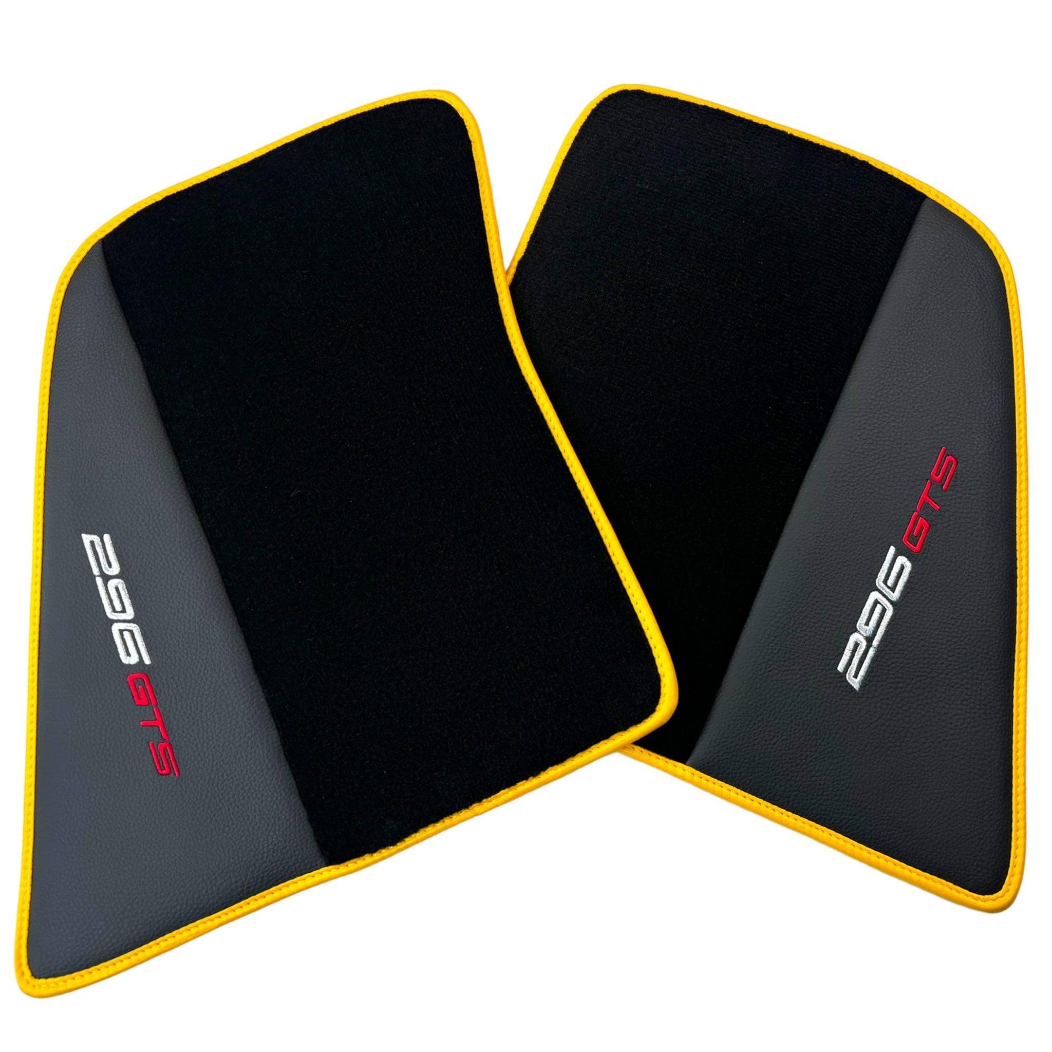 Black Floor Mats for Ferrari 296 GTS (2022-2025) with Leather and Yellow Trim