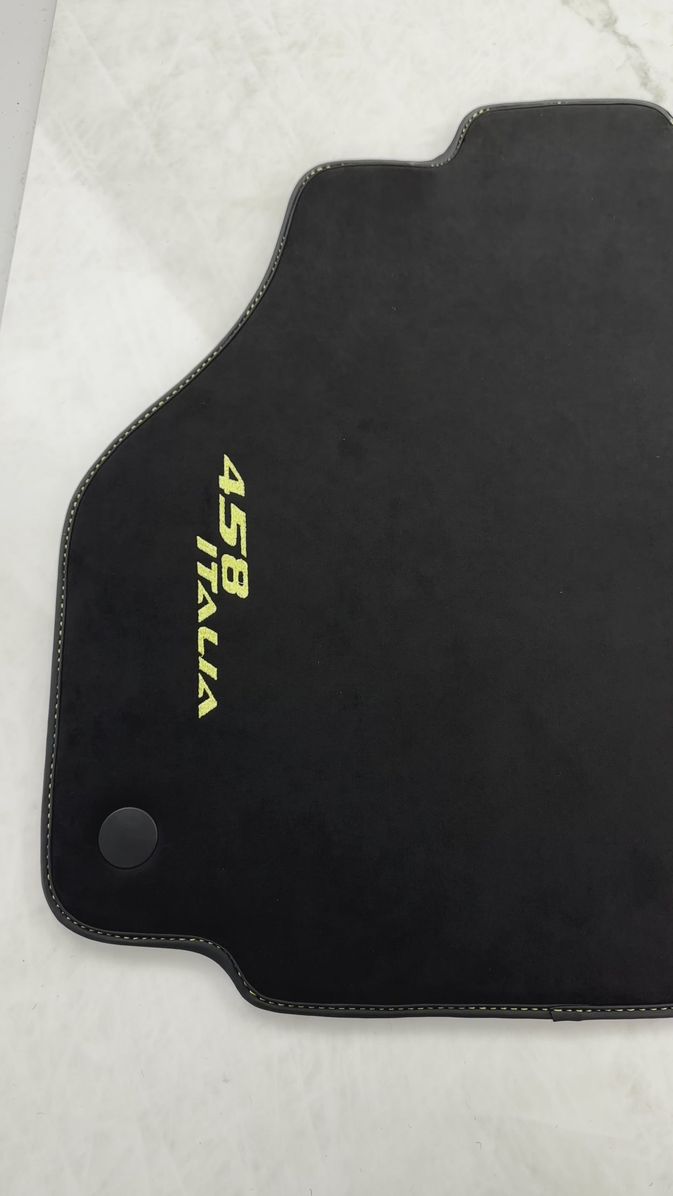 These high-quality floor mats for Ferrari 458 Italia (2009-2015) are made from Alcantara Black and feature a yellow logo. They provide superior protection and durability, with the perfect fit for your Ferrari. Add a touch of style to your car interior with these easy-to-install floor mats.