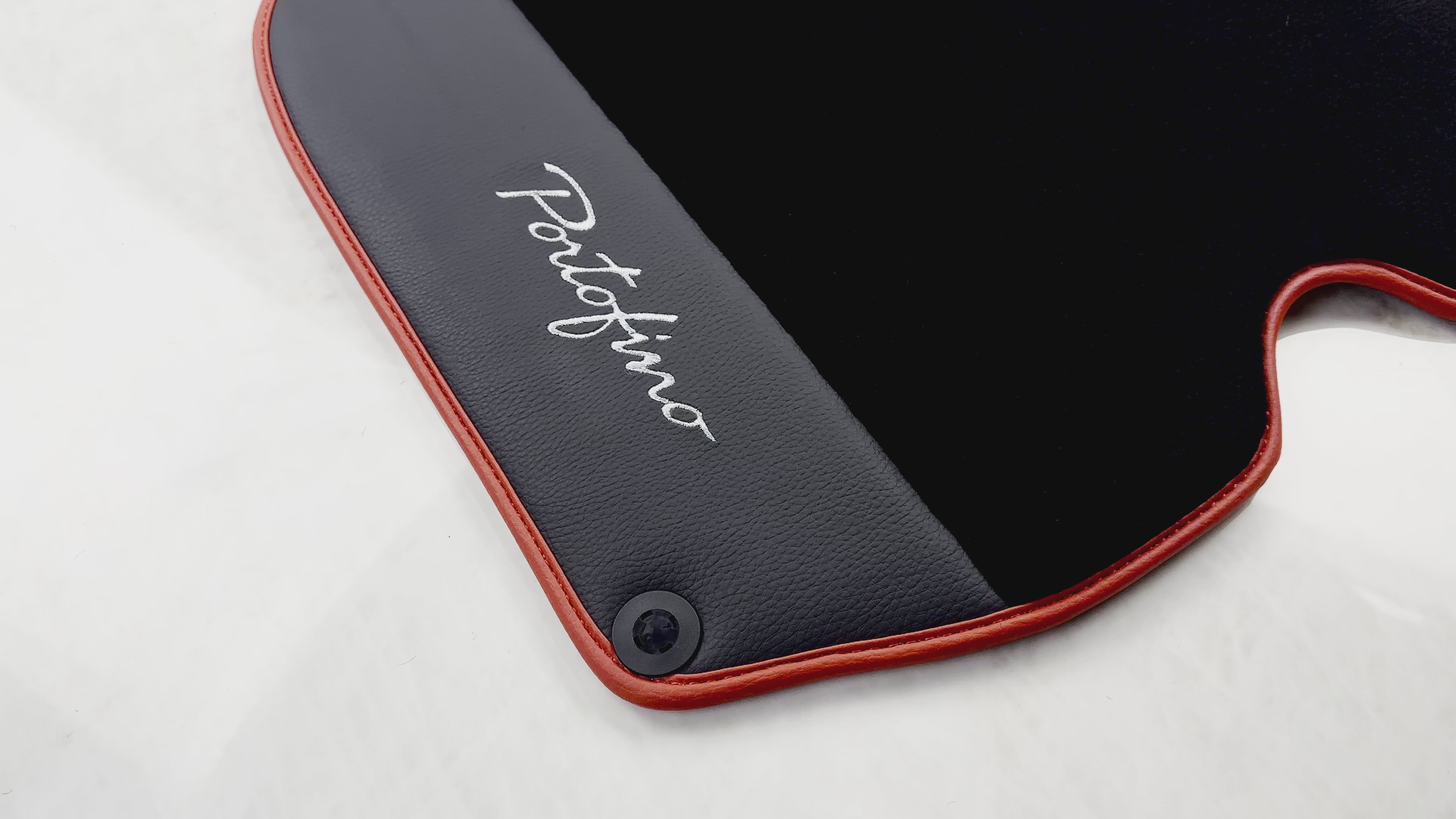 Black Floor Mats For Ferrari Portofino (2018-2023) With Leather and Red Trim