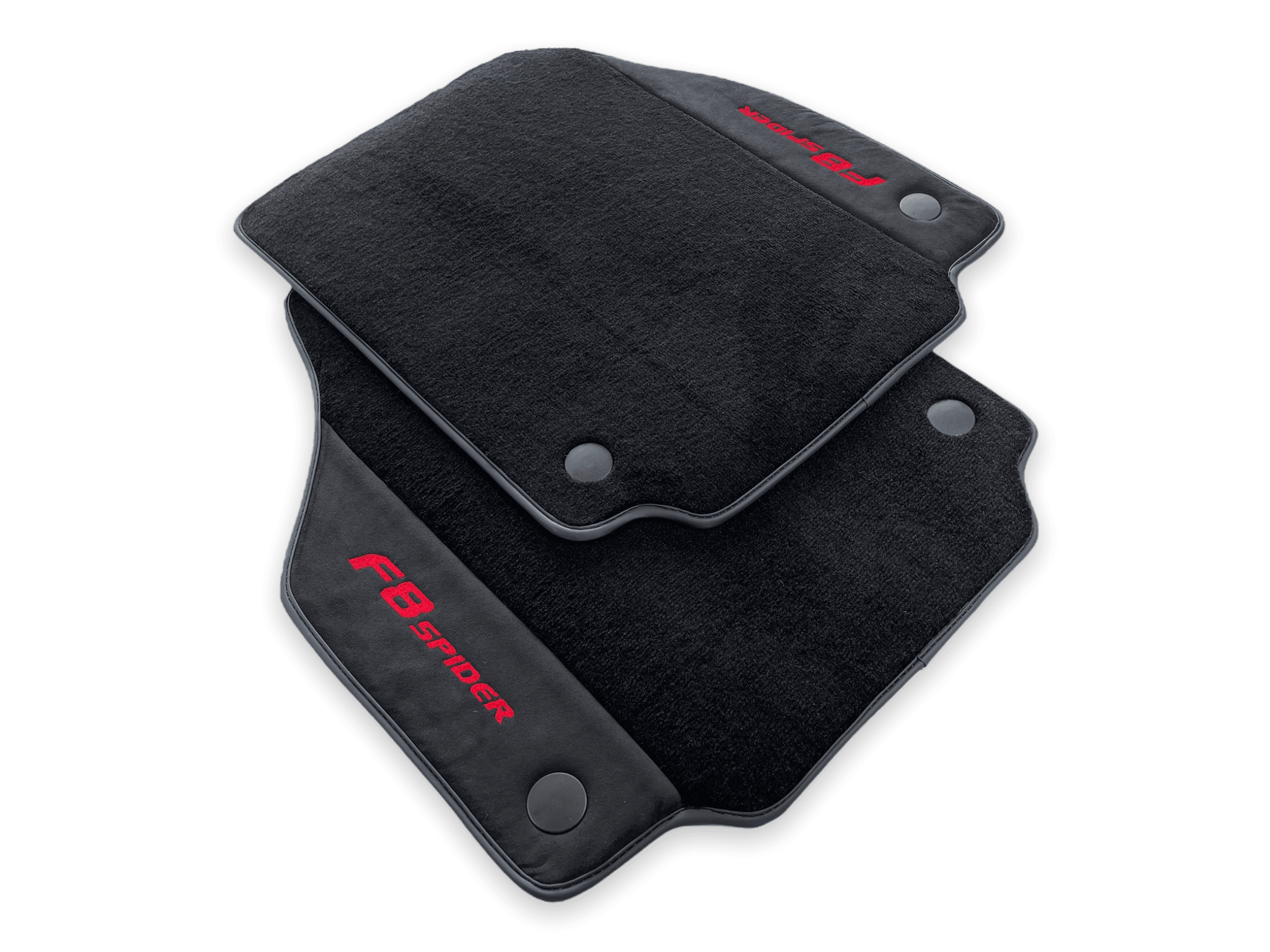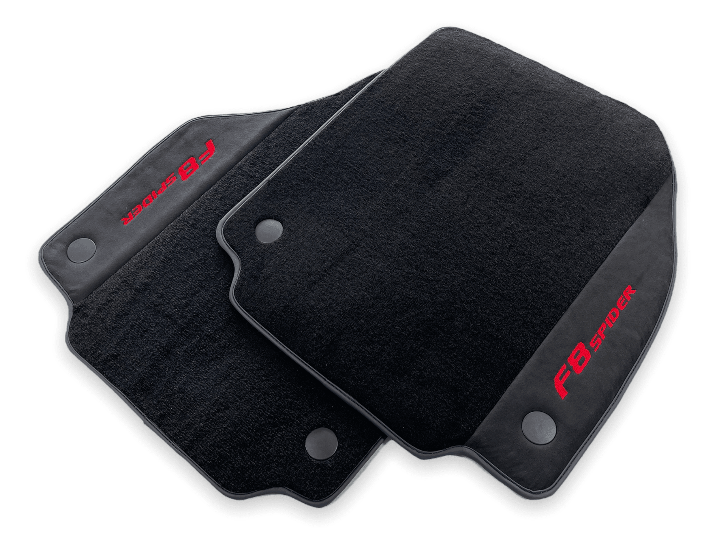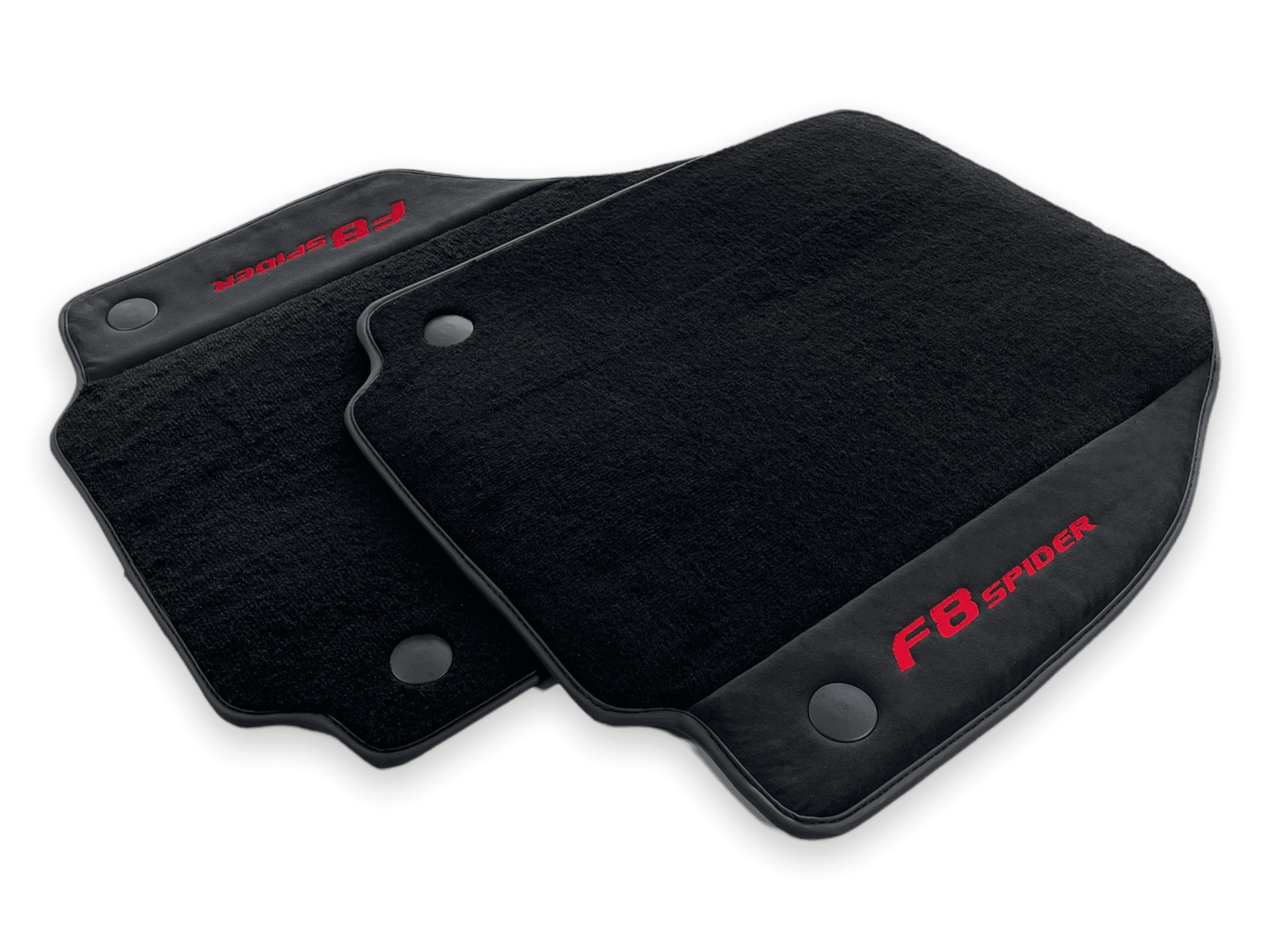 These red Italian edition floor mats are custom-made for the Ferrari F8 Spider 2019-2022 model. Made from high-quality materials, they provide a perfect fit and superior protection for your vehicle's interior. With their sleek design and durability, these floor mats are a must-have for any Ferrari owner.