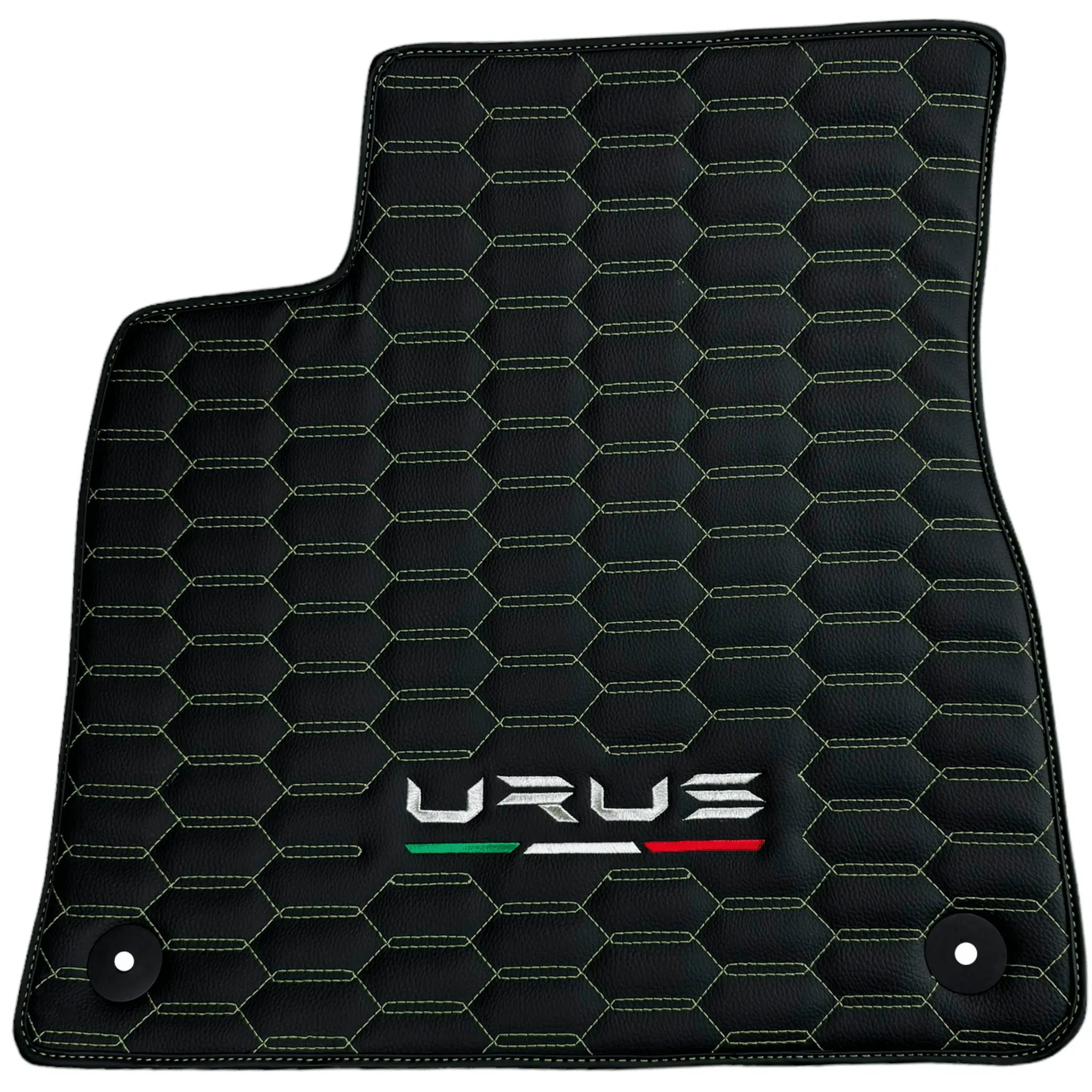 Customizable Leather Floor Mats for Lamborghini Urus with Green Stitching