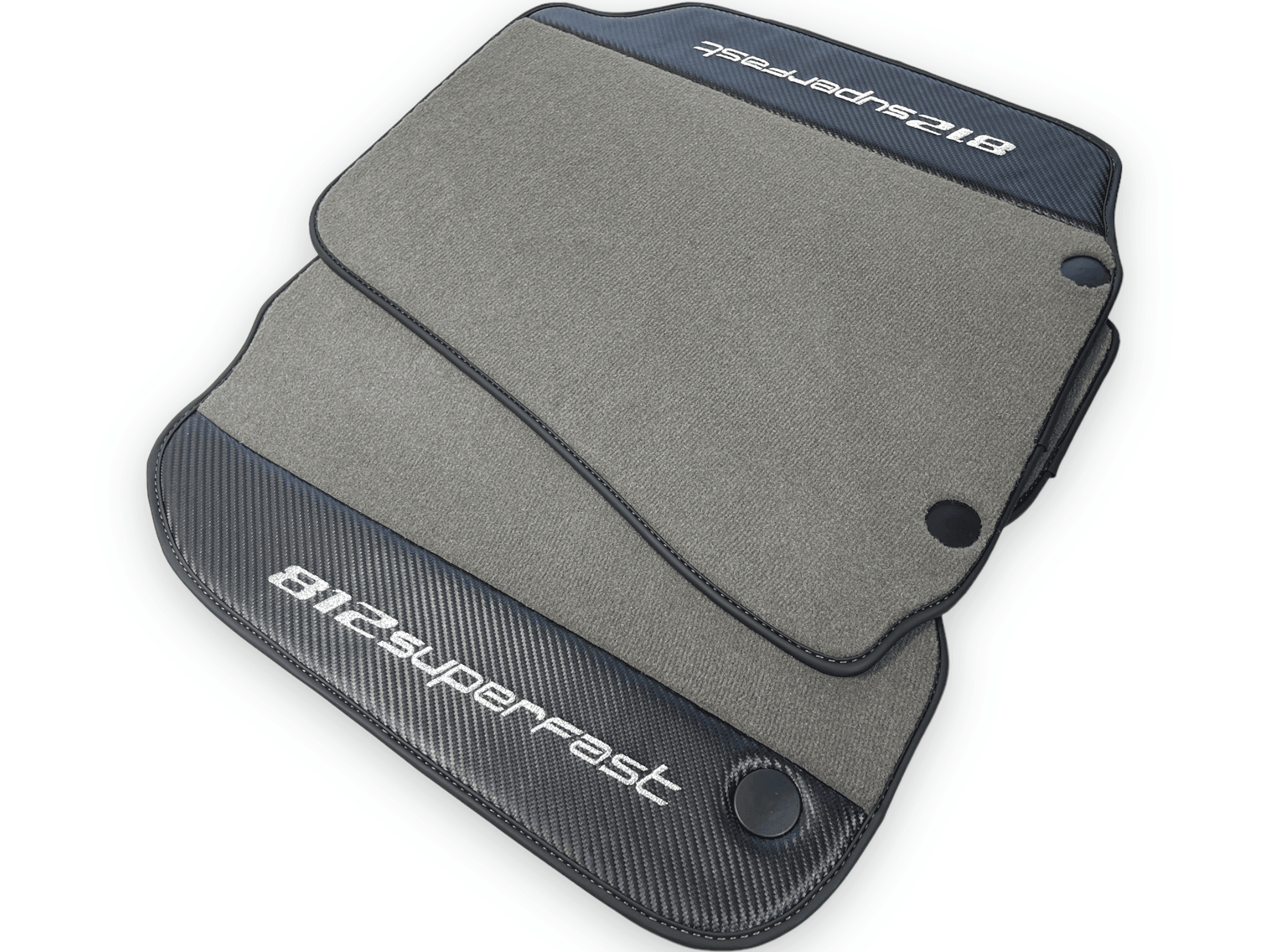 Gray Floor Mats For Ferrari 812 Superfast With Carbon Fiber Leather